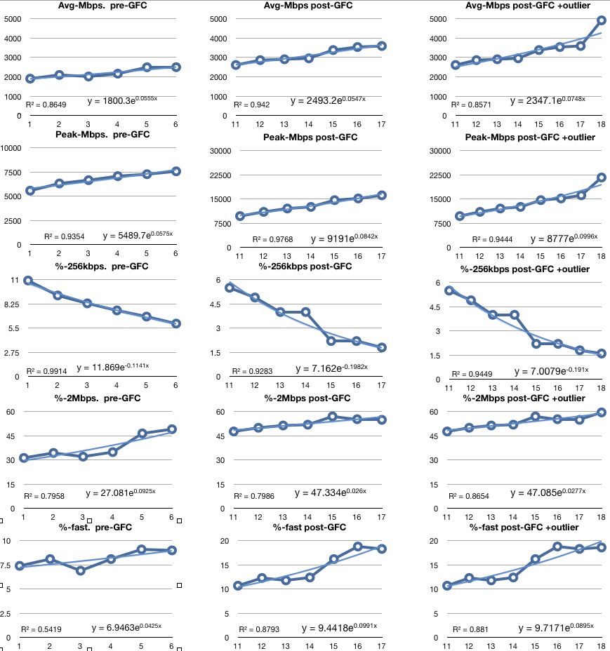 - Examine "Avg-Mbps" and "Peak-Mbps", for Post-GFC period